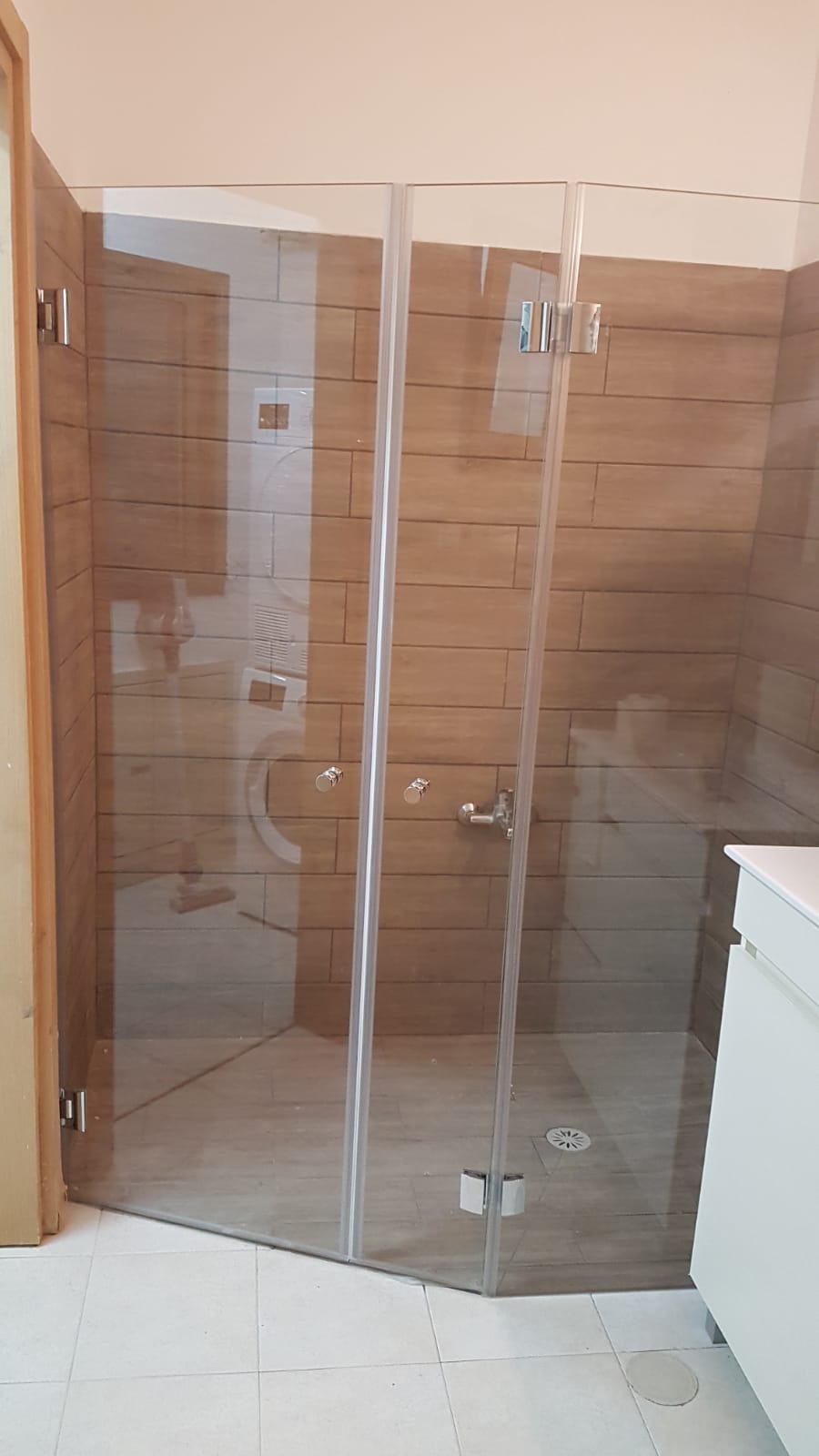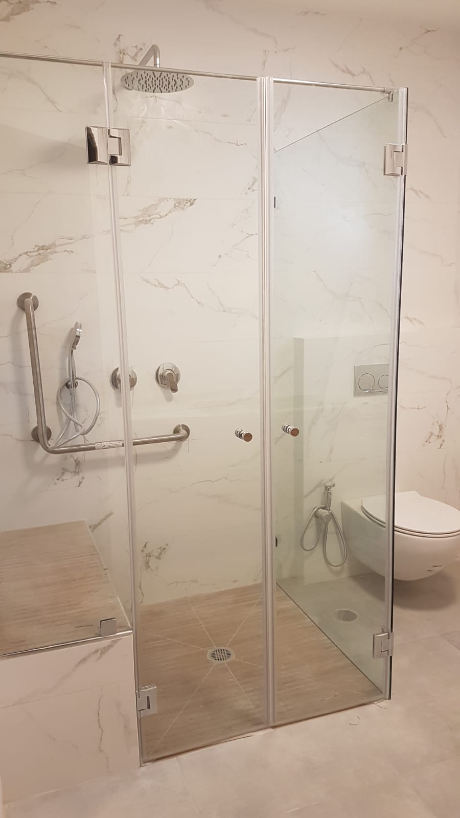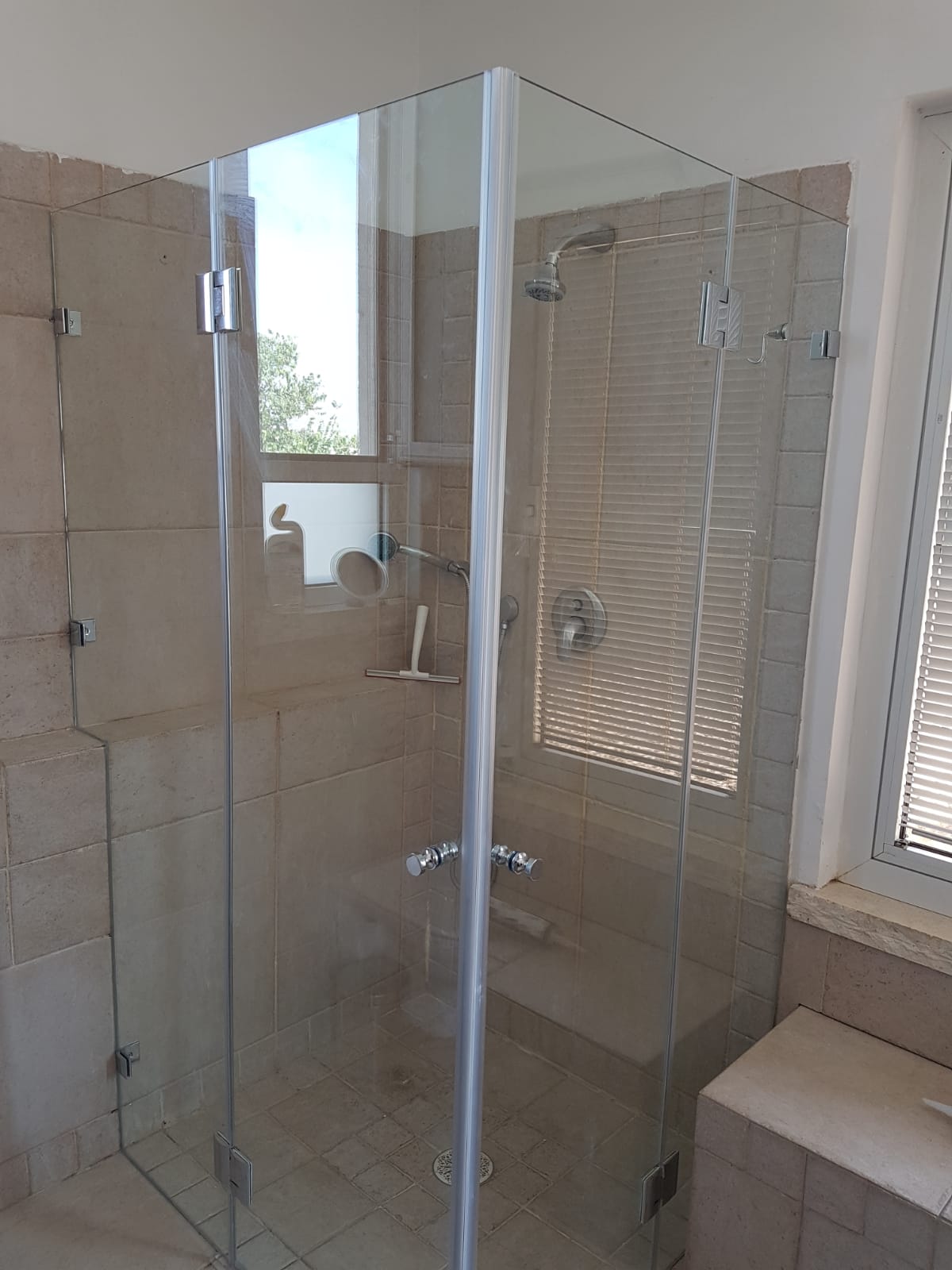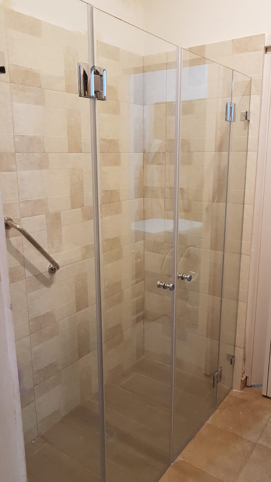 מקלחונים לפי מידה בבית הלקוח, עובי זכוכית - 8 מ"מ, פירזול כרום, בעלי רמת גימור גבוהה ומראה נקי.