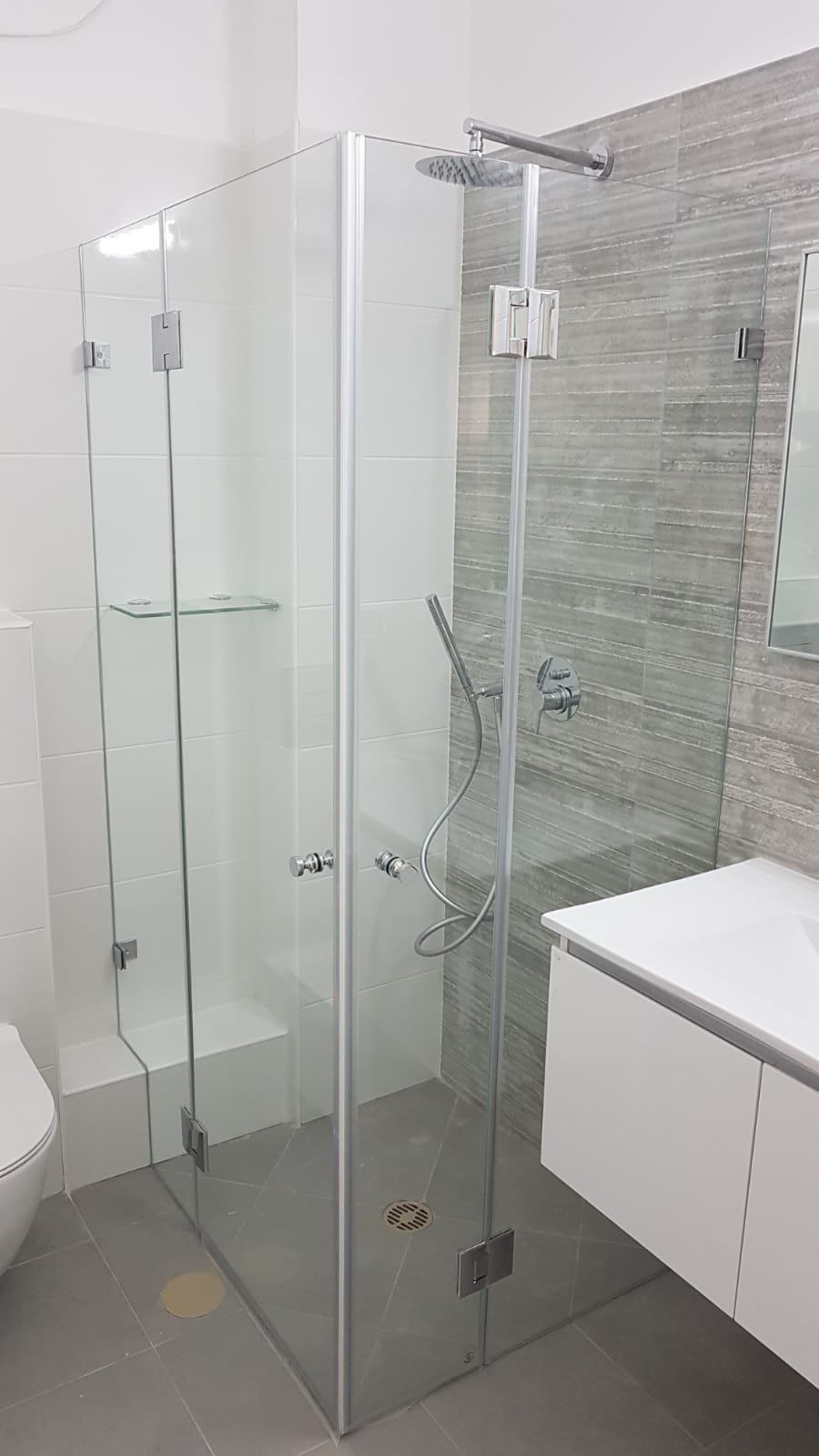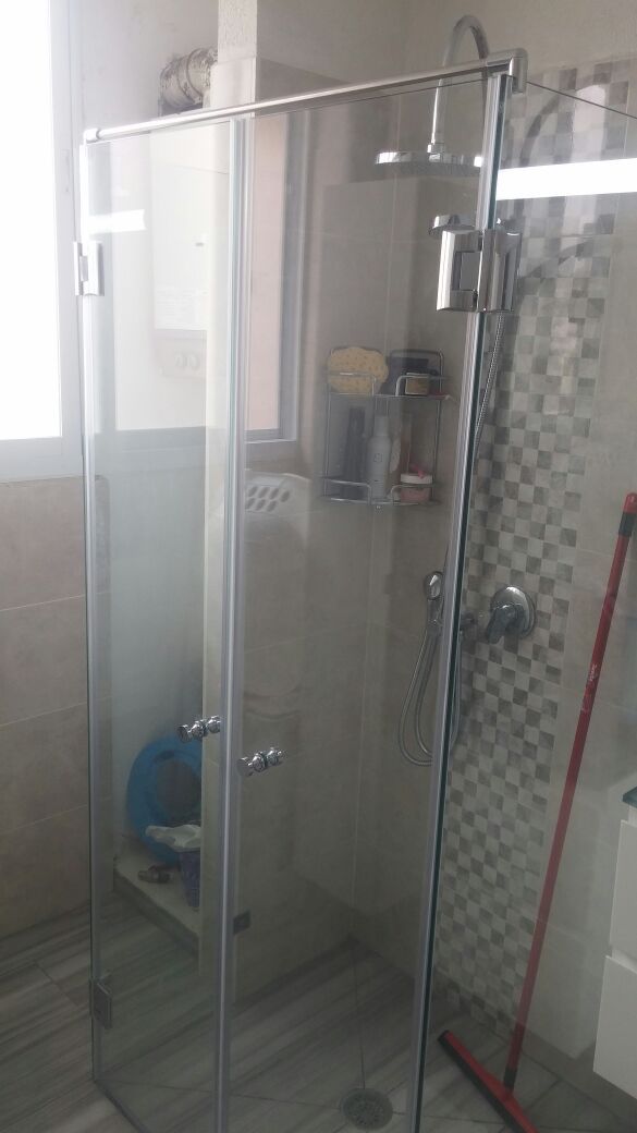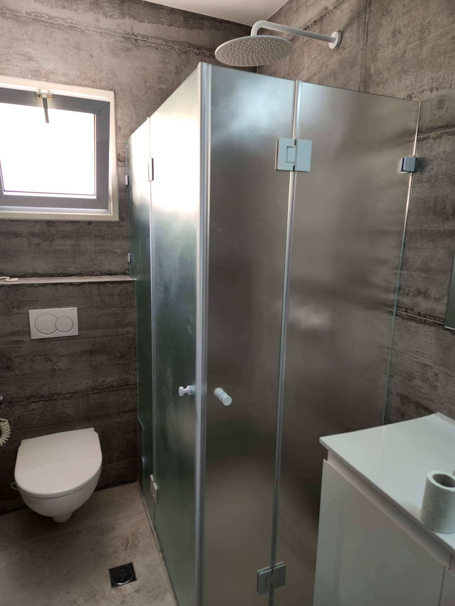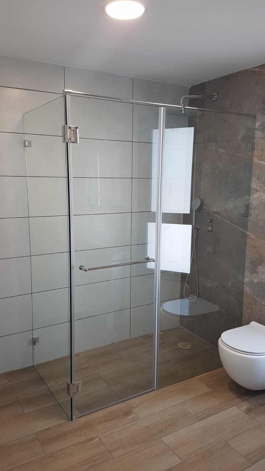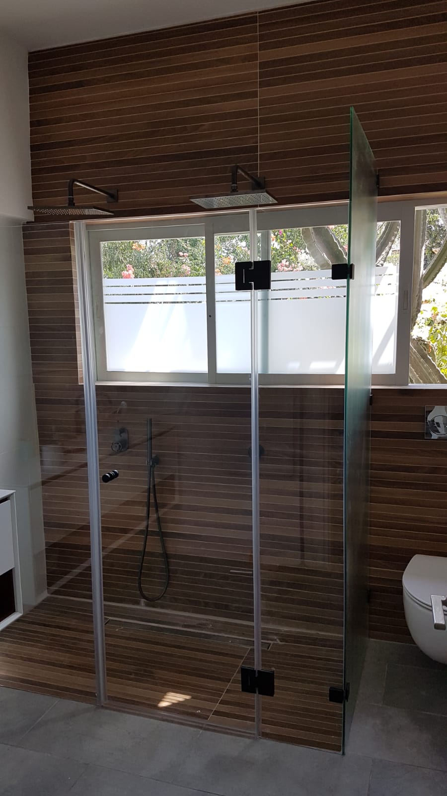 מקלחונים לפי מידה בבית הלקוח, עובי זכוכית - 8 מ"מ, פירזול כרום, בעלי רמת גימור גבוהה ומראה נקי.