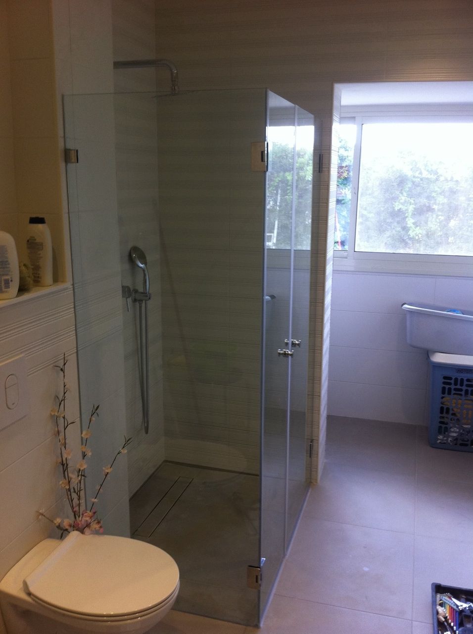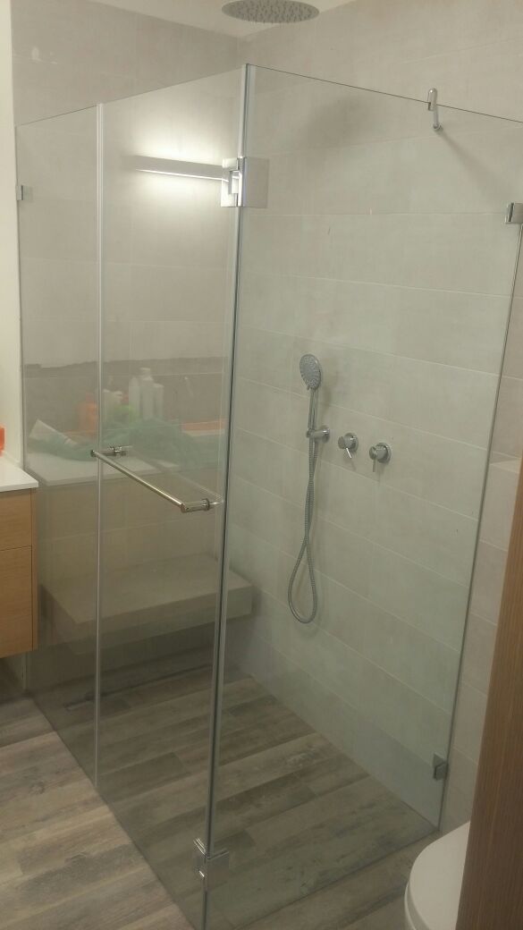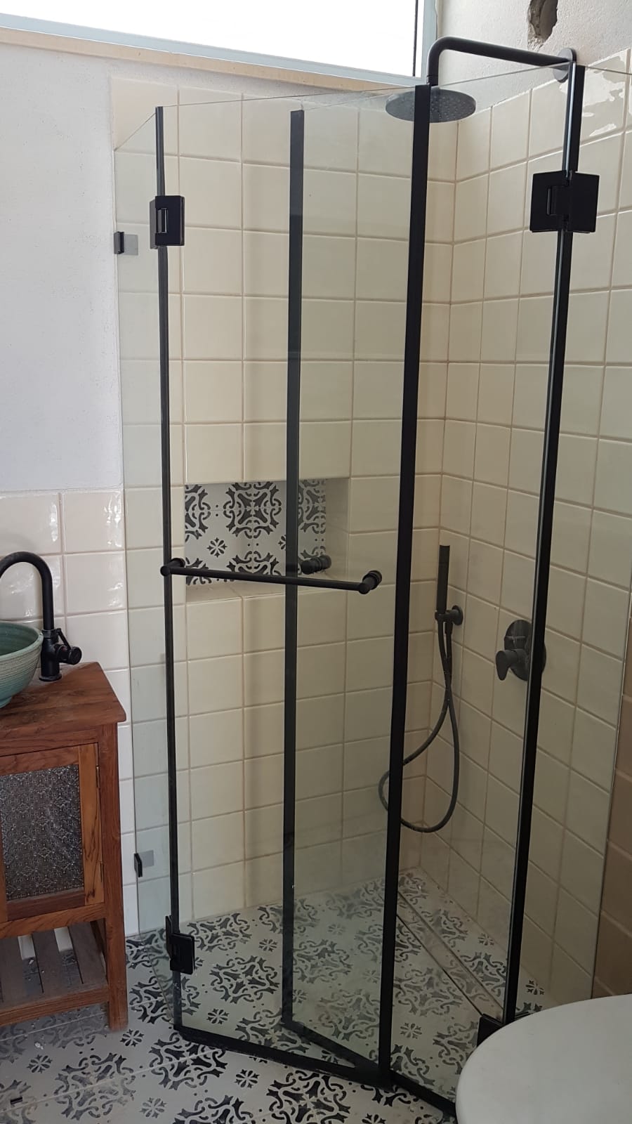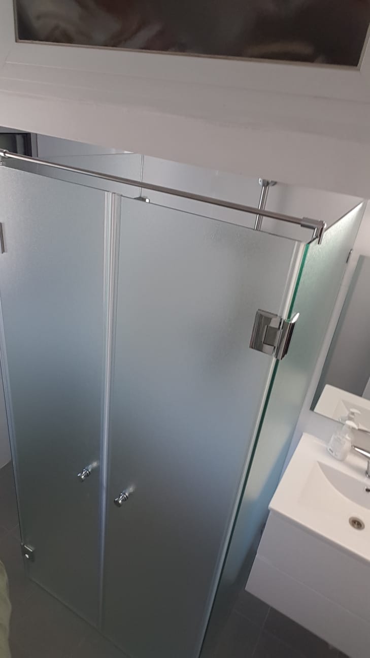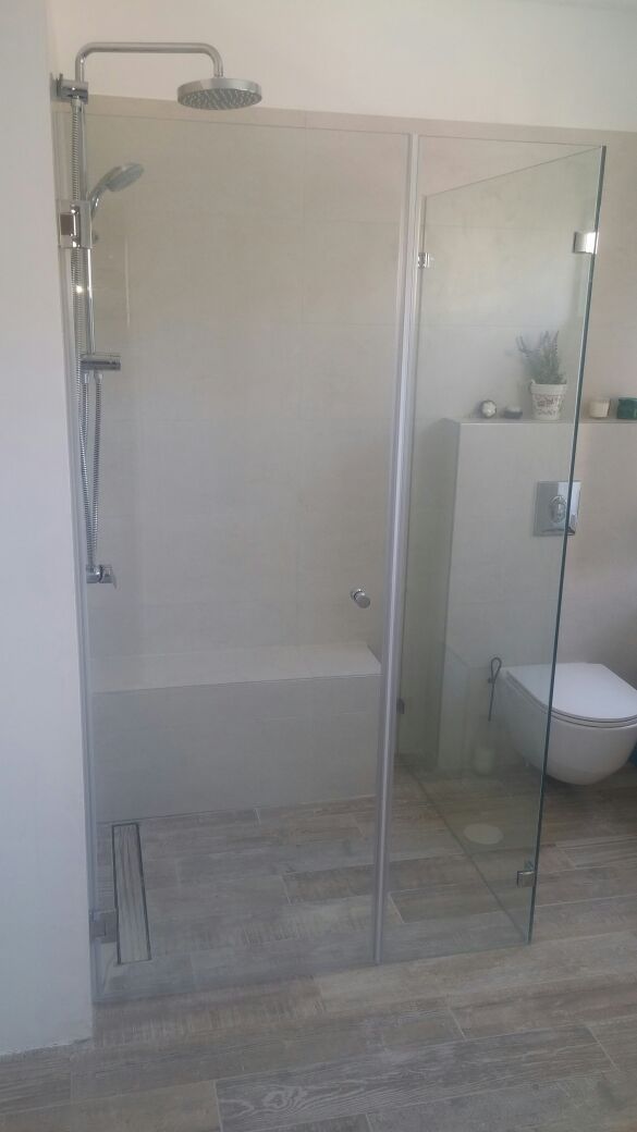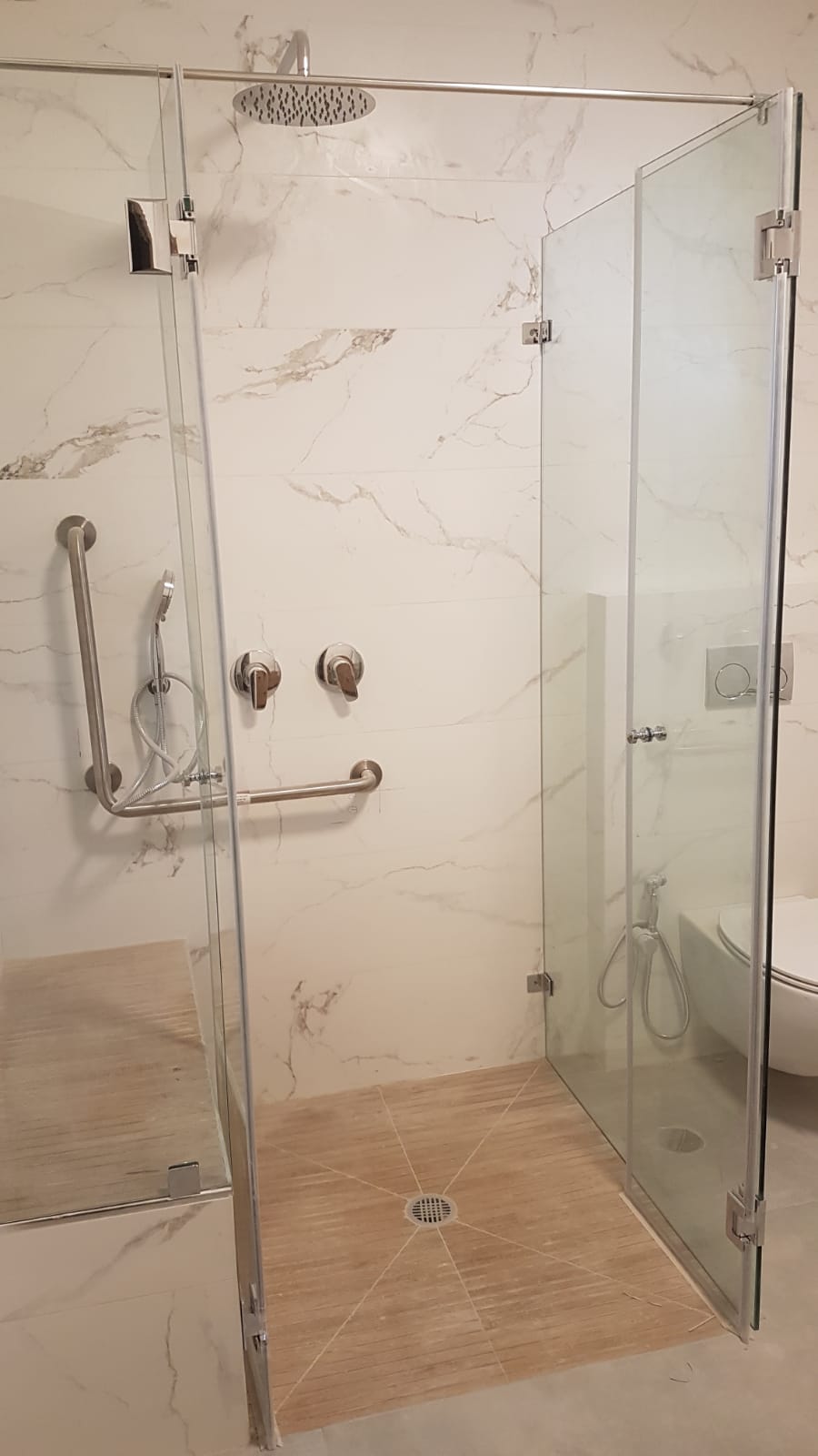 מקלחונים לפי מידה בבית הלקוח, עובי זכוכית - 8 מ"מ, פירזול כרום, בעלי רמת גימור גבוהה ומראה נקי.
