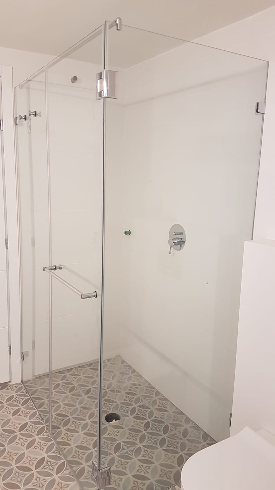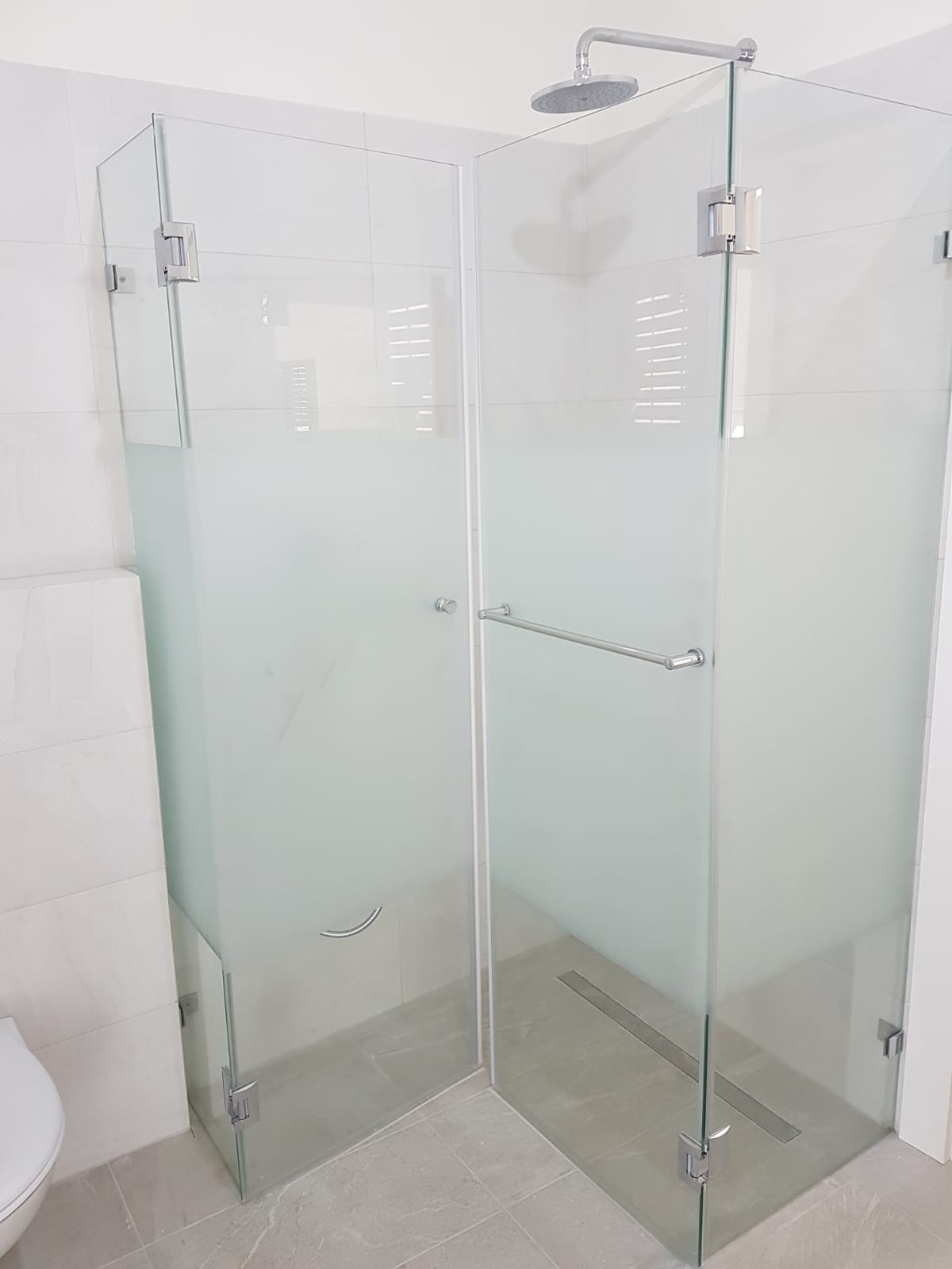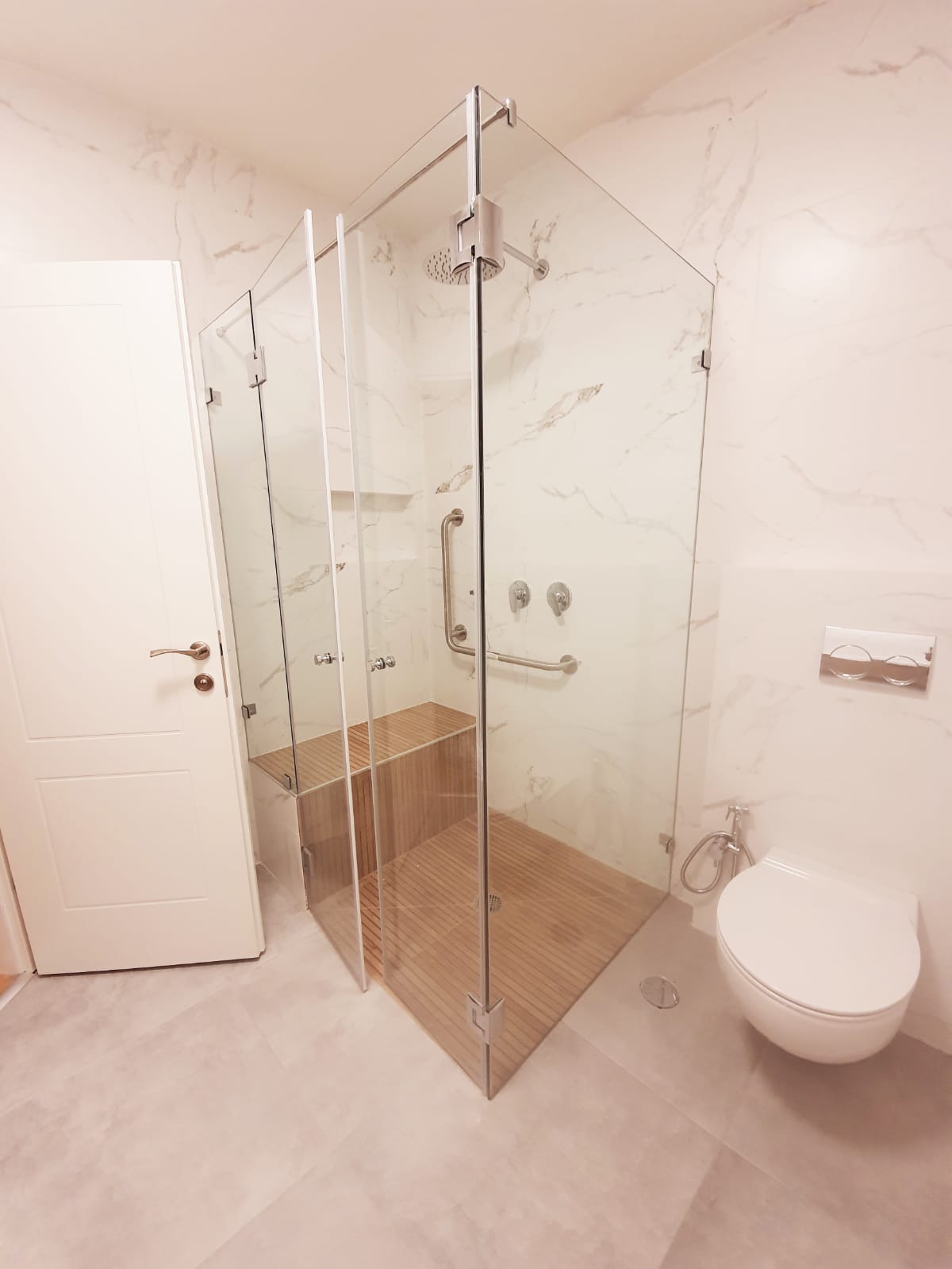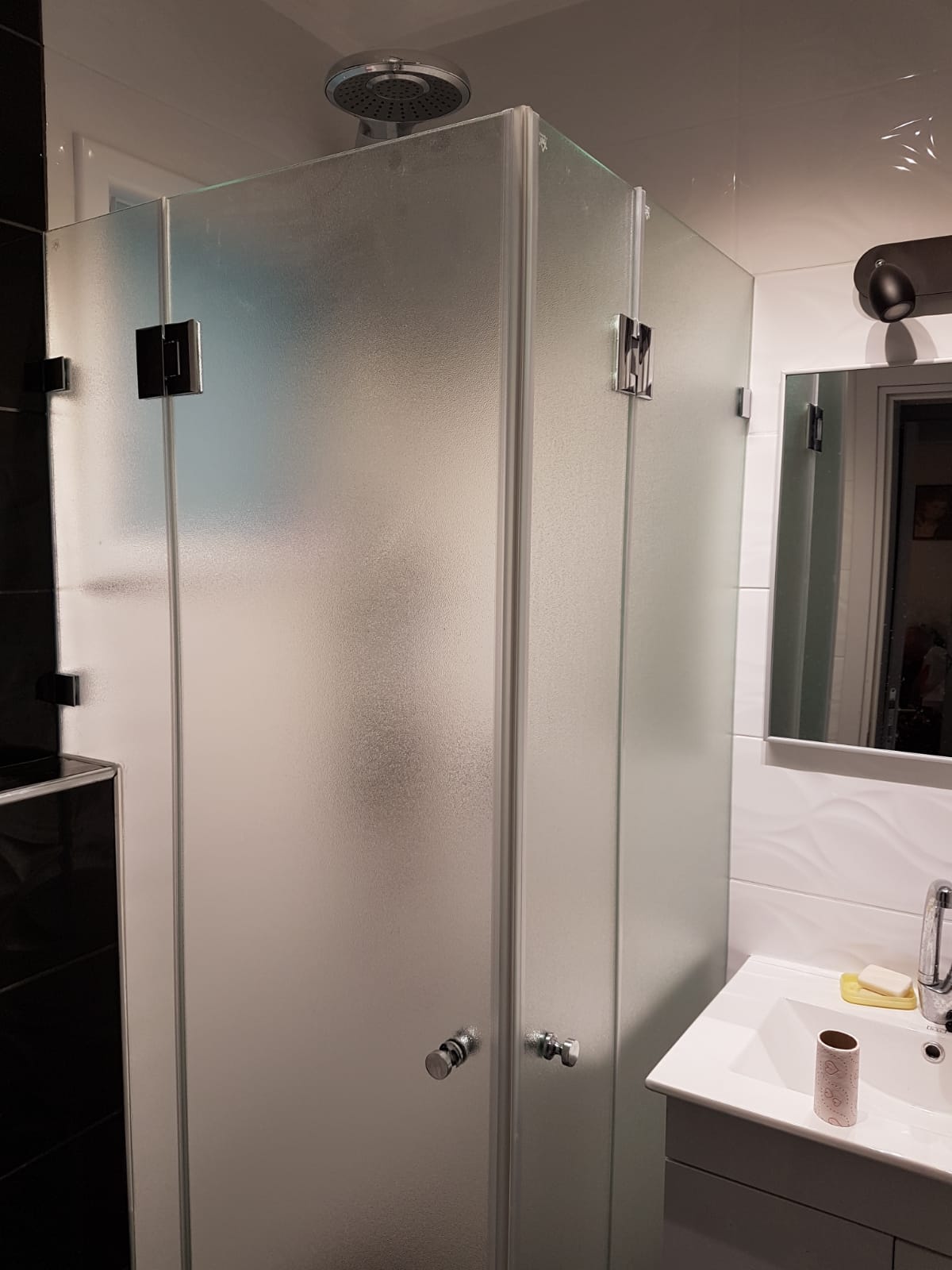 מקלחונים לפי מידה בבית הלקוח, עובי זכוכית - 8 מ"מ, פירזול כרום, בעלי רמת גימור גבוהה ומראה נקי.