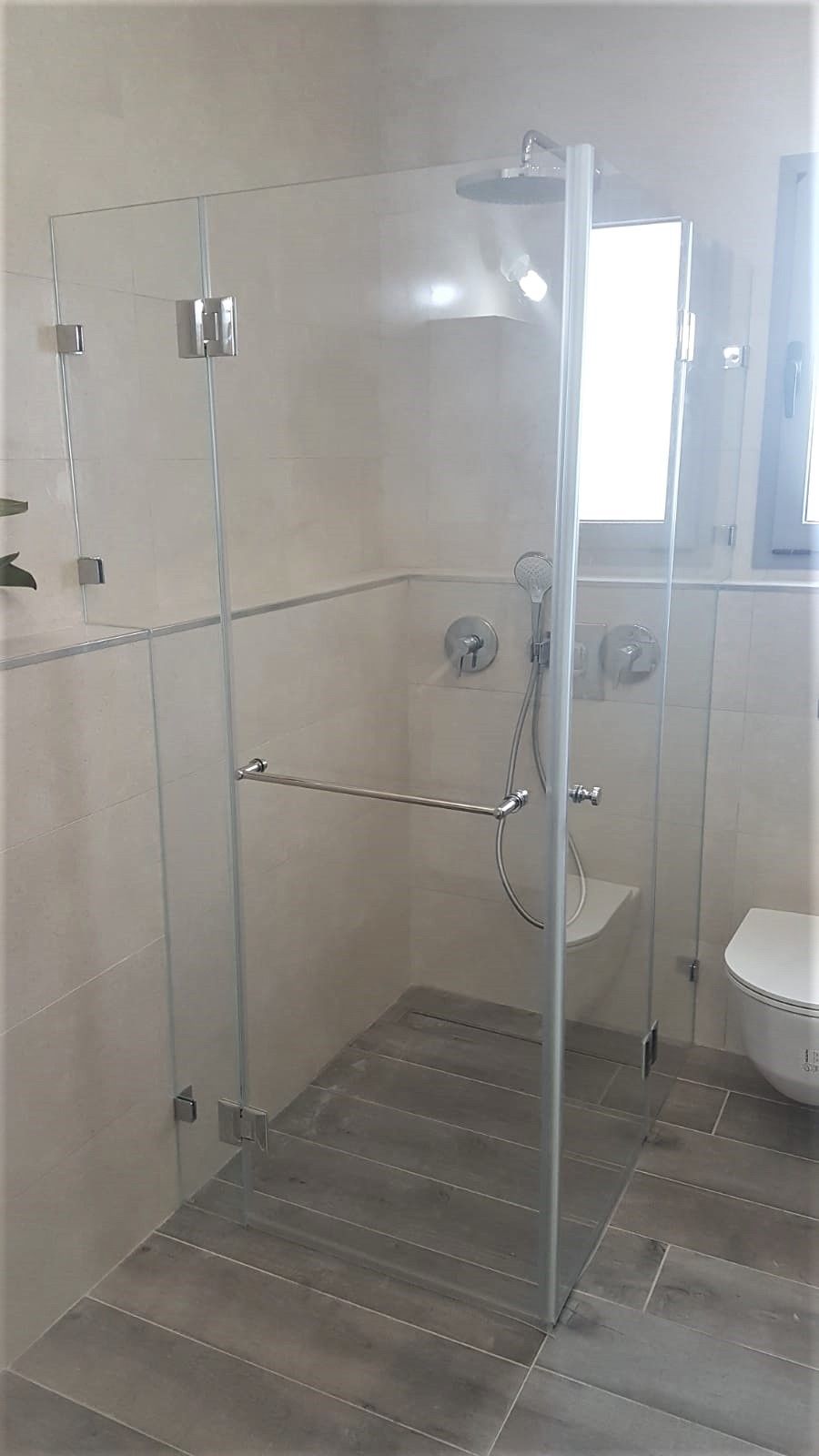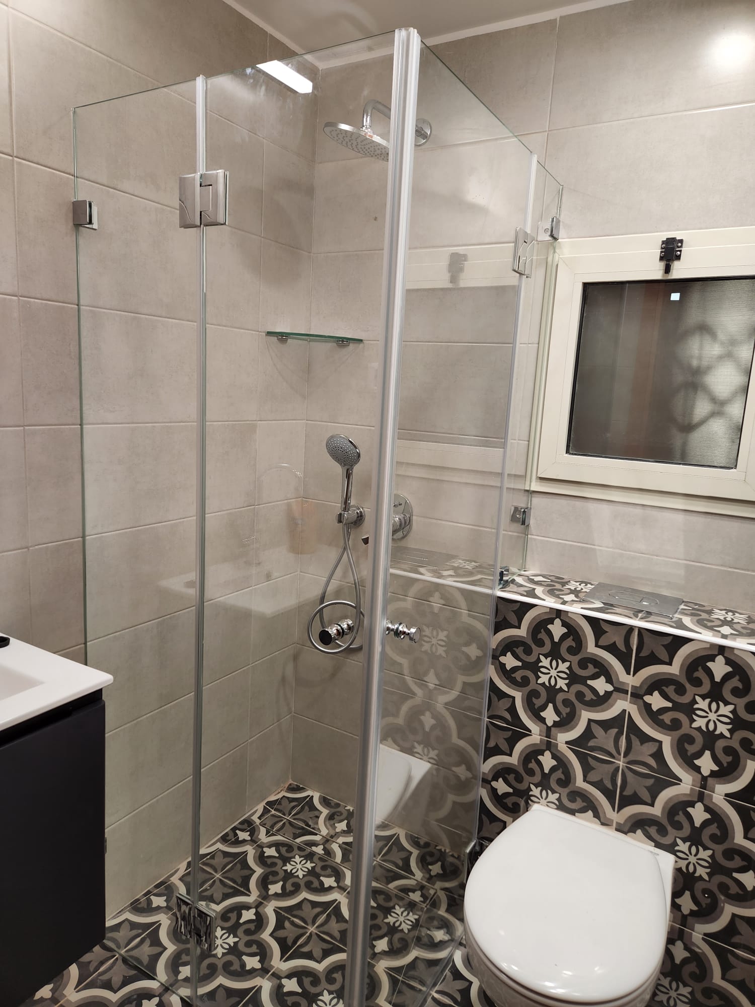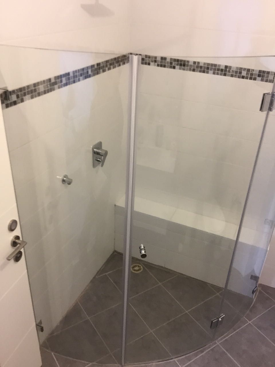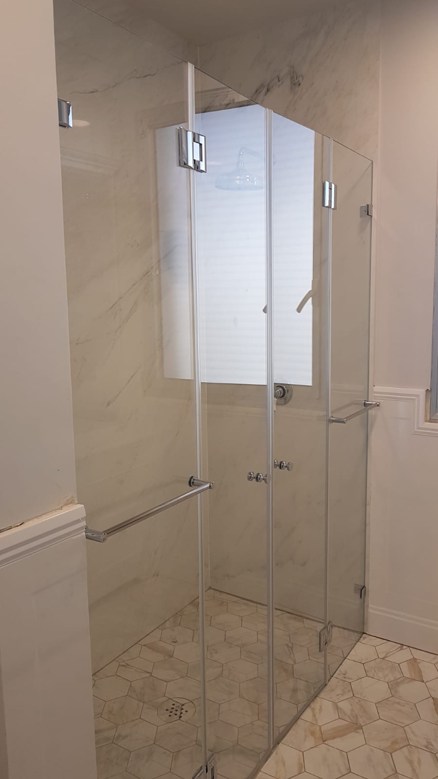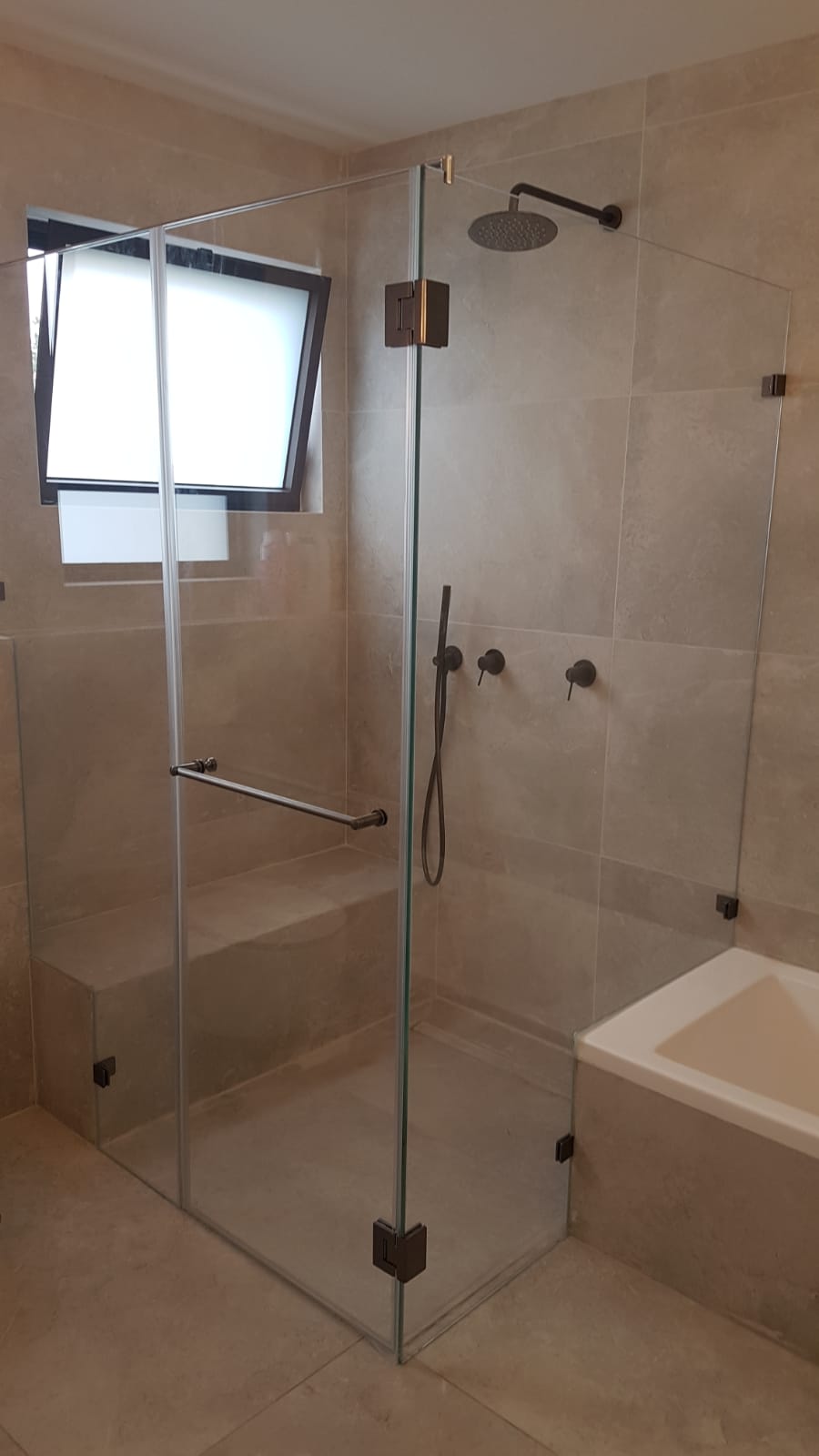 מקלחונים לפי מידה בבית הלקוח, עובי זכוכית - 8 מ"מ, פירזול כרום, בעלי רמת גימור גבוהה ומראה נקי.