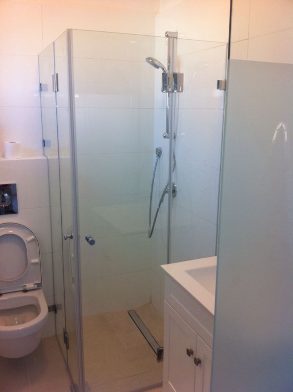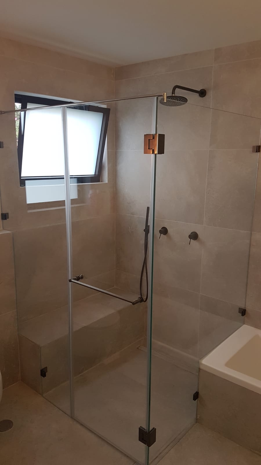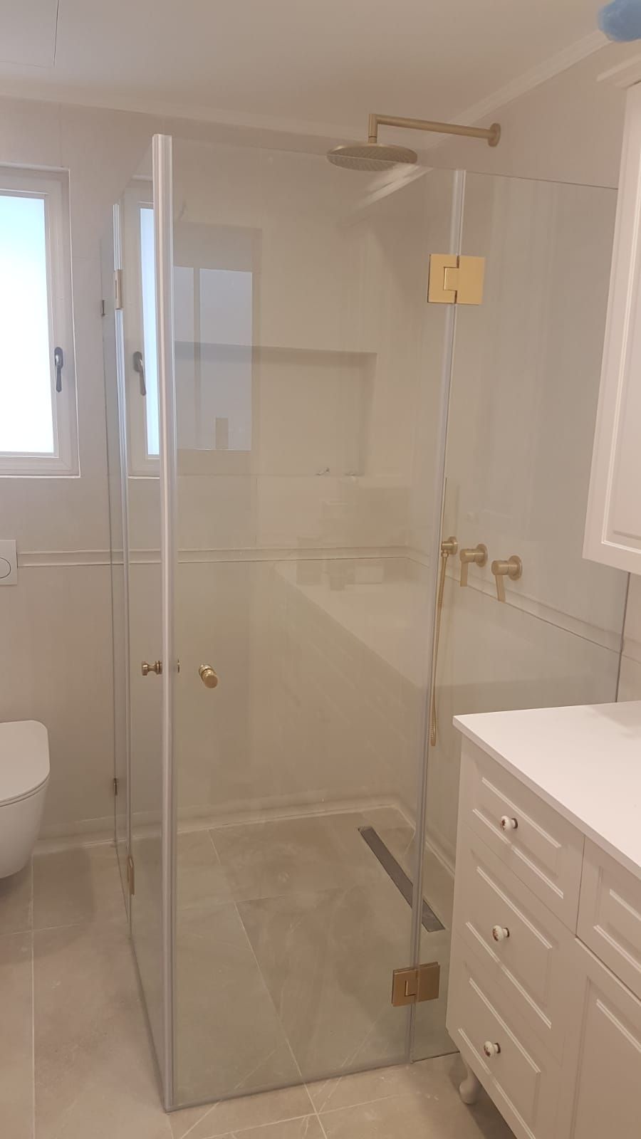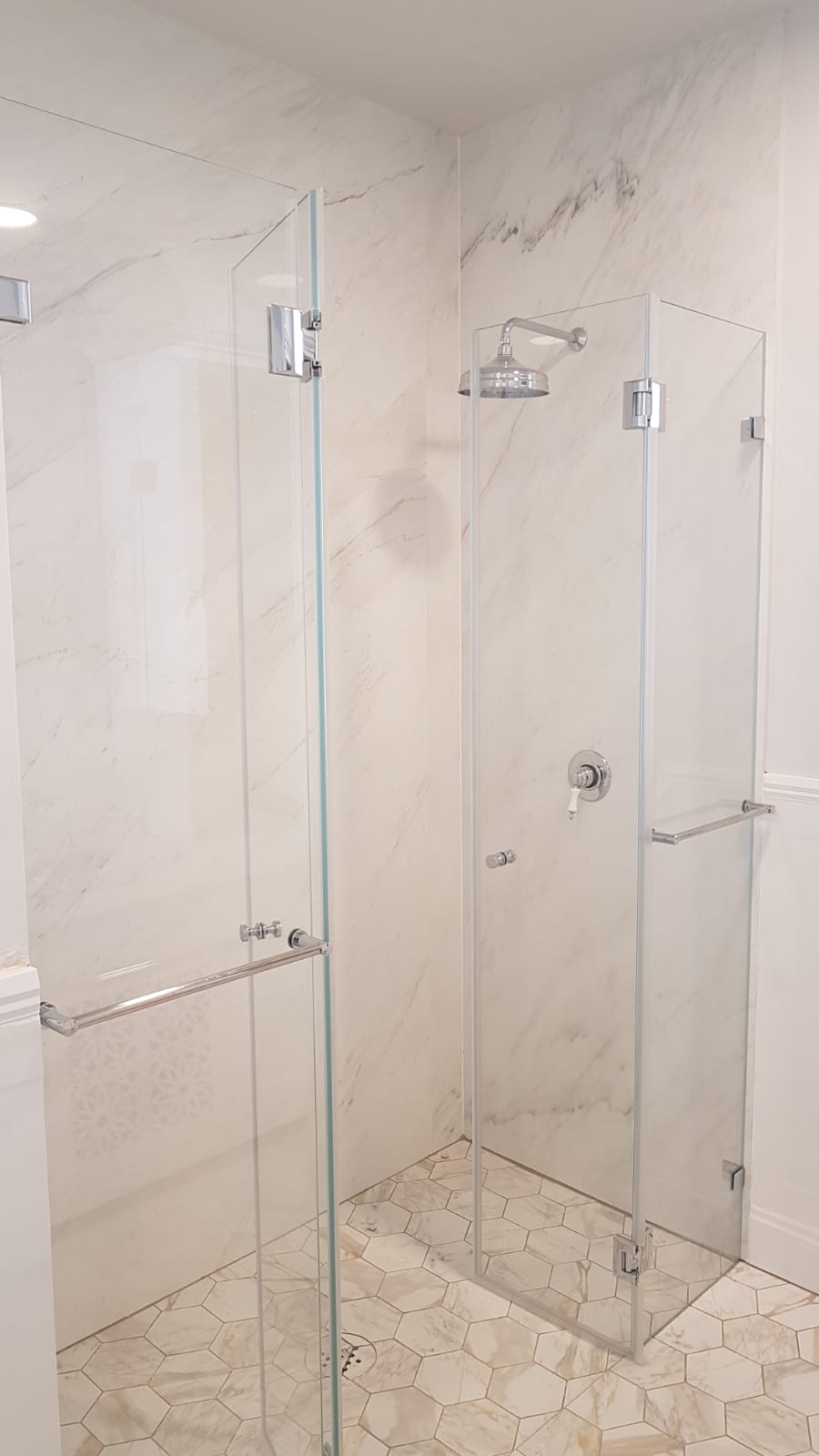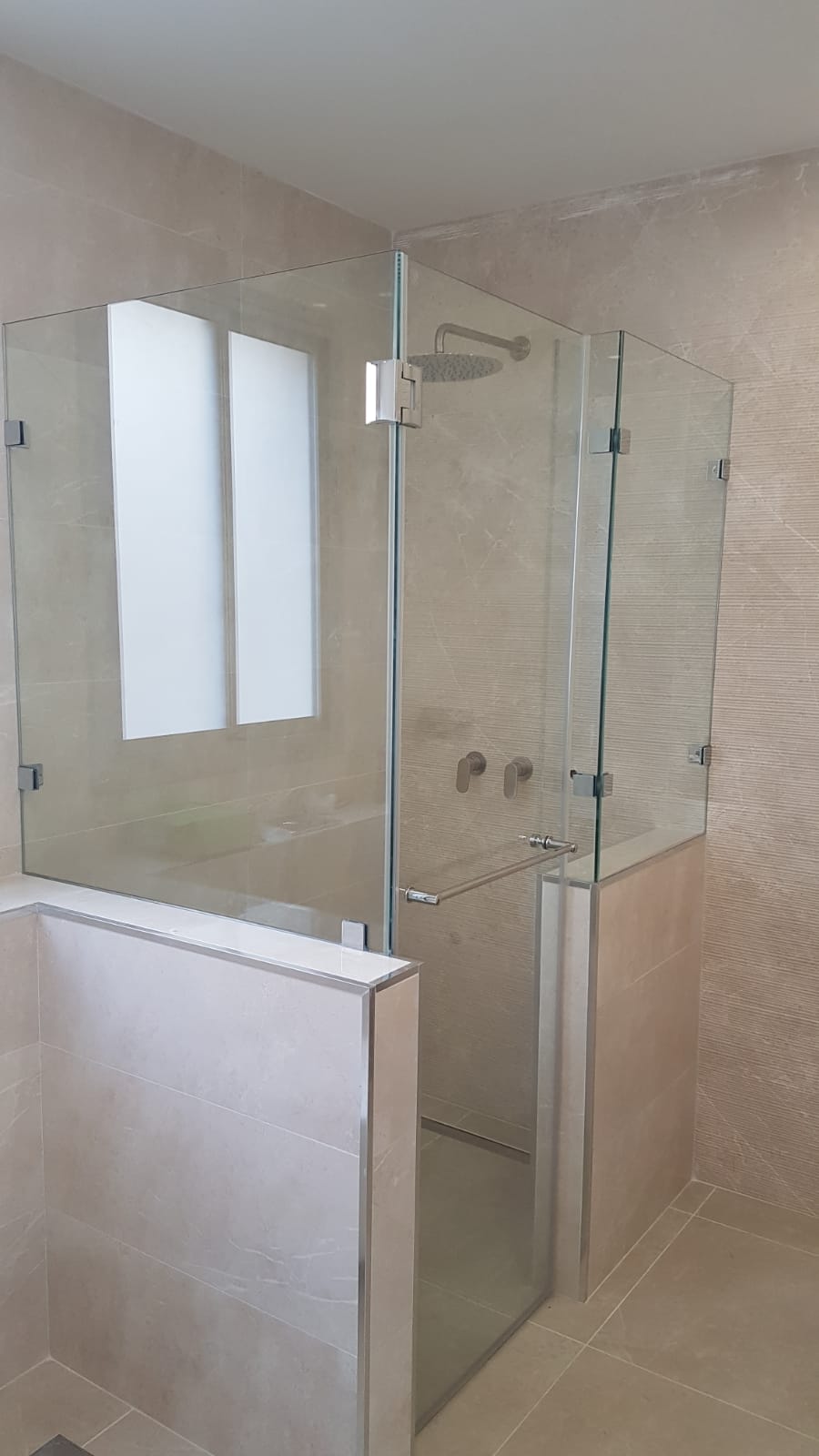 מקלחונים לפי מידה בבית הלקוח, עובי זכוכית - 8 מ"מ, פירזול כרום, בעלי רמת גימור גבוהה ומראה נקי.